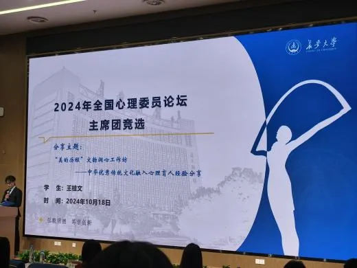 3名学生代表之一随队参加并作主题汇报,最终成功当选2024年全国心理委员论坛副主席。