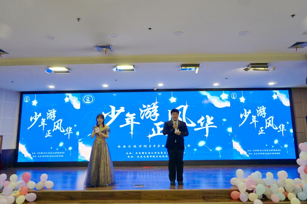 在长安文化艺术中心三楼多功能报告厅隆重举办了“少年游,正风华”2024级迎新联欢晚会。新加坡工程院院士、学院院长Fwa Tien Fang,副院长汤颖颖、杨旭,系主任,新生班主任,教学与国际交流部、学生事务部成员与2024级全体本科生、研究生及其他年级学生代表共计230余人欢聚一堂,共襄盛举,晚会由2021级本科生魏紫晗、2024级本科生陈洋共同主持。