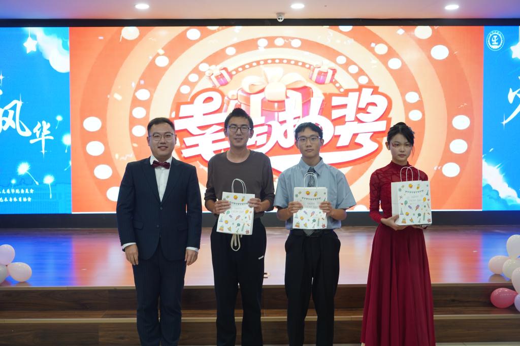 晚会的中场环节同样充满欢声笑语。游戏“你画我猜”中,同学们的创意表演引人阵阵发笑;“听歌识曲”环节中,同学们踊跃举手参与,现场气氛热烈非凡。而最令人期待的抽奖环节更是将晚会推向了又一个高潮,幸运观众的喜悦感染了全场,院领导、新生辅导员为幸运观众颁奖并合影留念,为他们留下了难忘的回忆。
