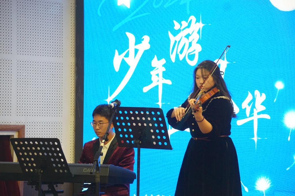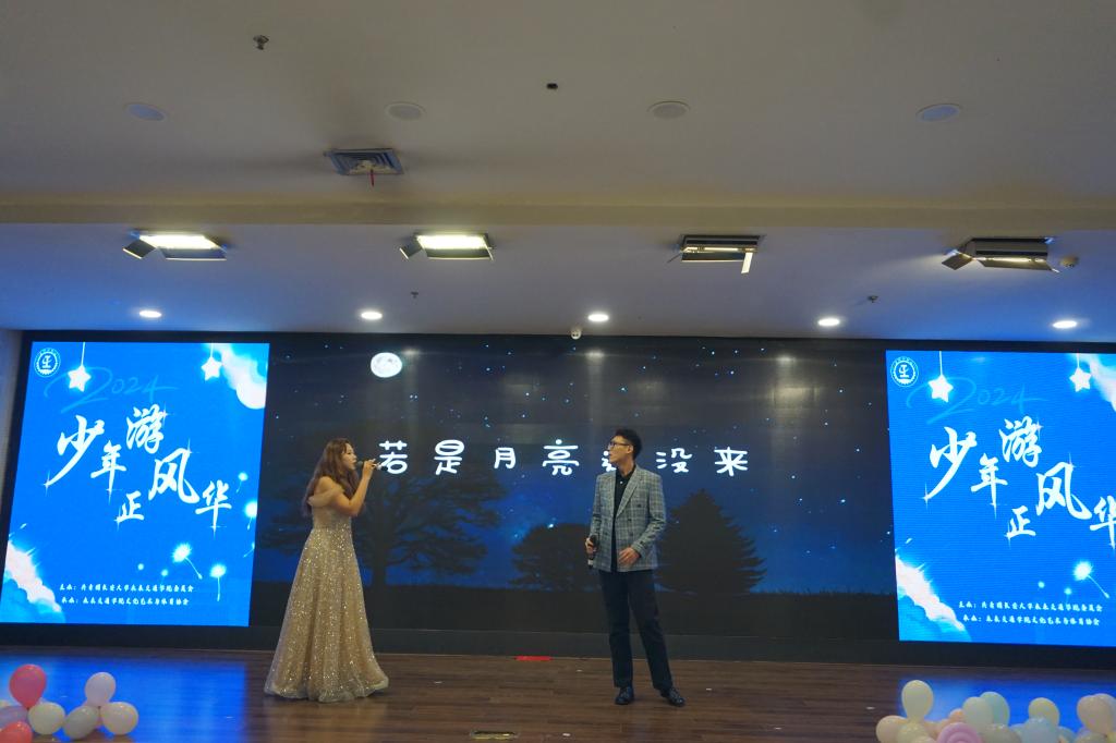 在晚会的后半程,兼职辅导员戴汐涓和2024级本科生徐子婷共同带来的节目《生活倒影》深深打动了在场观众。戴汐涓用优美的歌声将生活的点滴化作动人的旋律,而徐子婷则以优雅的舞姿将歌曲中的情感完美诠释,二者相得益彰,共同演绎了一段关于生活的美好篇章。