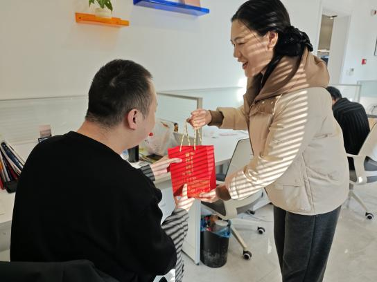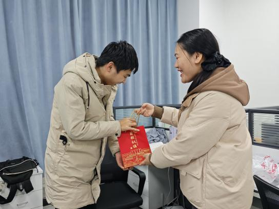 祝福礼包内,不仅“能量满满”的士力架、寓意“心想事成”的脐橙,更有学院老师亲手书写的专属祝福纪念卡,满载着对学子们的殷切期望与美好祝愿,期盼他们能顺利上岸,乐事将至。