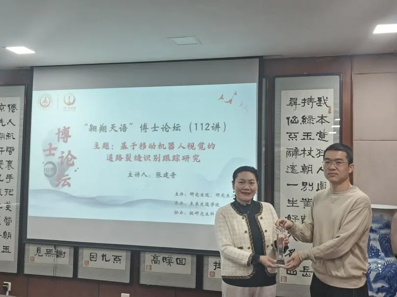 承办,校研究生科学技术协会协办的“翱翔天语”博士论坛第112讲暨“研途领航”系列论坛(第1讲)在南校区北院学术交流中心举办。信息工程学院2022级博士研究生张建奇受邀作了题为《基于移动机器人视觉的道路裂缝识别跟踪研究》的报告,小艾电竞