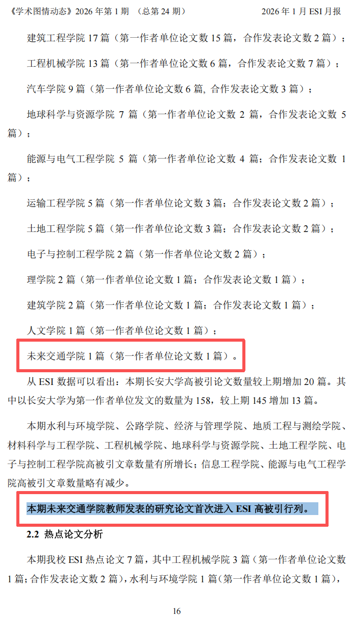 成立以来,师生发表的研究论文首次进入ESI高被引行列(学院作为第一作者单位)。