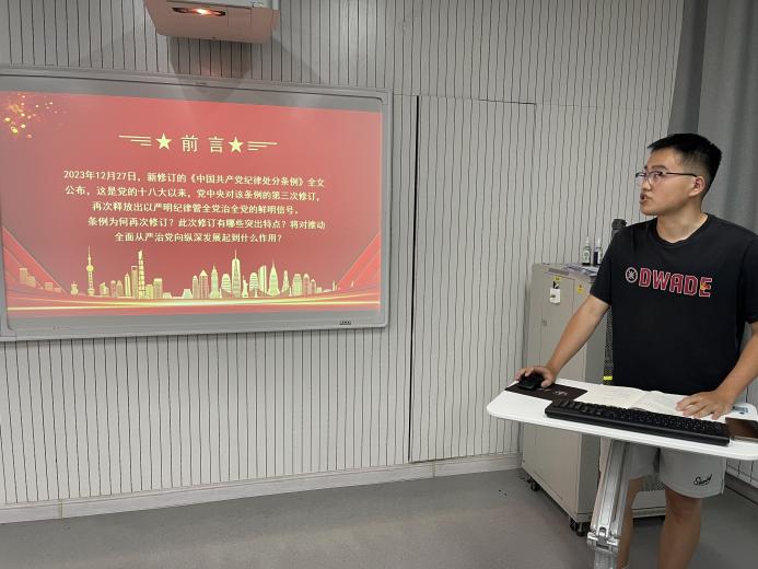 为贯彻落实党中央《关于加强新时代廉洁文化建设的意见》,推动党纪学习教育走深走实,根据《教育部办公厅关于举办第九届高校廉洁教育系列活动的通知》要求和机关党委及党支部学习活动安排,6月6日晚,未来交通党支部开展毕业生党员党纪学习教育暨廉洁文化课。未来交通党支部组织委员刘志兴、支部全体学生党员参与。活动由学生党员季书贤主持。