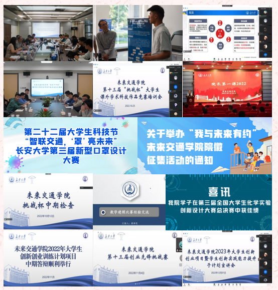激发科创育人新活力、新动能。承办科技节活动——“智联交通,‘罩’亮未来”第三届新型口罩设计大赛,引导青年学子树立创新意识。以大学生创新创业项目训练计划和学生创新能力提升子计划为抓手,积极开展数学建模、“挑战杯”、“互联网+”、创业先锋挑战赛、“五小创”等科创比赛宣讲培训工作,利用“院长课堂”、“工科青年说”、“弘毅讲堂”等平台资源,累计开展宣讲培训类活动46次,培养学生创新精神和理论实践相结合能力。