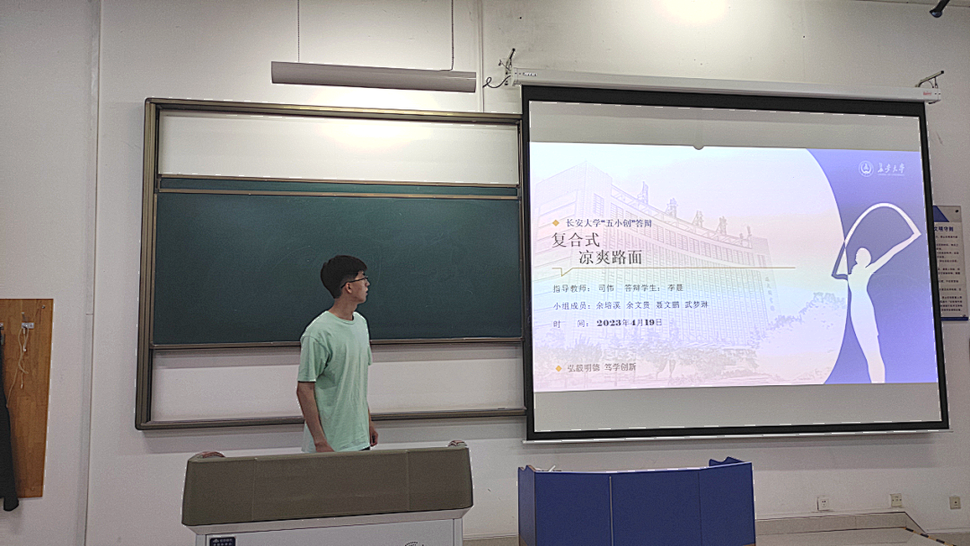 本次比赛共有6支队伍参与答辩,活动分为项目展示和评委提问两个环节。在项目展示环节,各个参赛队伍依托PPT对本队项目进行了详细的讲解。各队准备充分、逻辑严谨、语言凝练、思维活跃、主题贴切,全方位展示了各队作品的具体内容和应用价值。有团队研究基于互感原理的道路无线充电等比例缩尺装置,提供了一种成本低、稳定性好、操作简单、测试精度高的路面材料及结构对无线电能传输效率影响的测试装置;有团队着眼于城市中的热岛效应和提高道路行人的出行体验,研究思考复合式“凉爽”路面来降低各路面结构的温度、改善沥青路面的高温情况;有团队研究了一种具有自修复功能的沥青路面以优化传统路面养护体系。