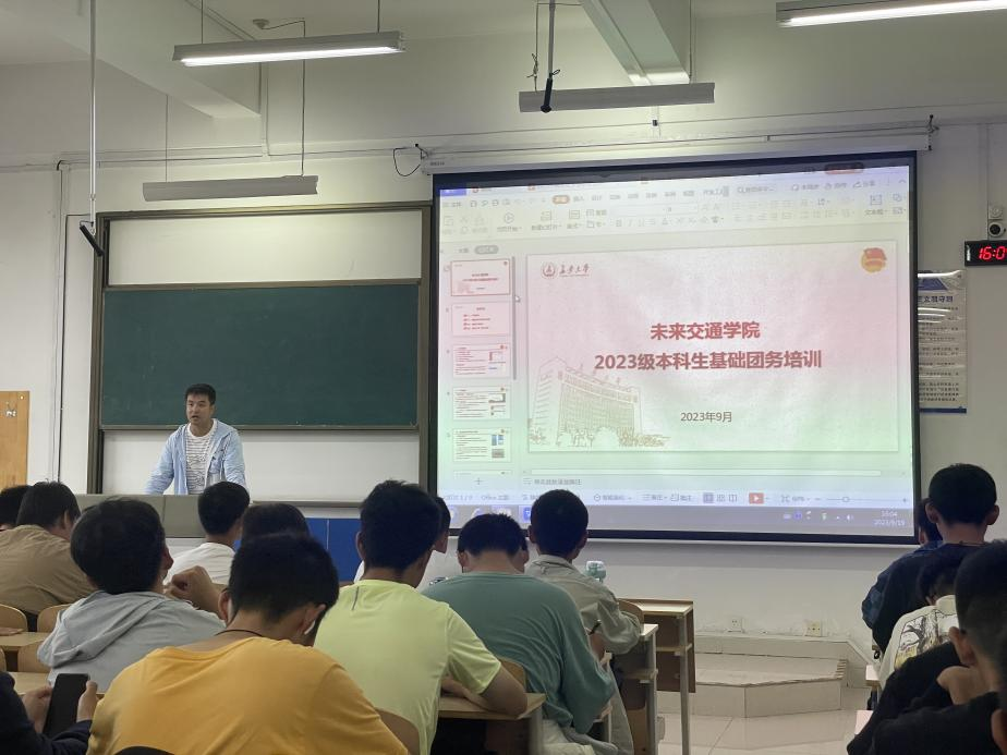 组织开展2023级本科生基础团务暨入党启蒙教育培训会,会议由院团委书记、2023级辅导员曾晓阳主讲,全体2023级本科生参会。