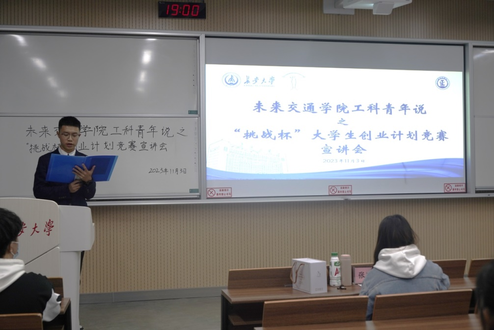 大学生科技创新创业协会于北校区WX2102教室举办工科青年说之“挑战杯”创业计划竞赛宣讲会。此次宣讲会邀请运输工程学院大学生科技创新创业协会主席张明珠、信息工程学院2022级研究生董世浩主讲,小艾电竞
