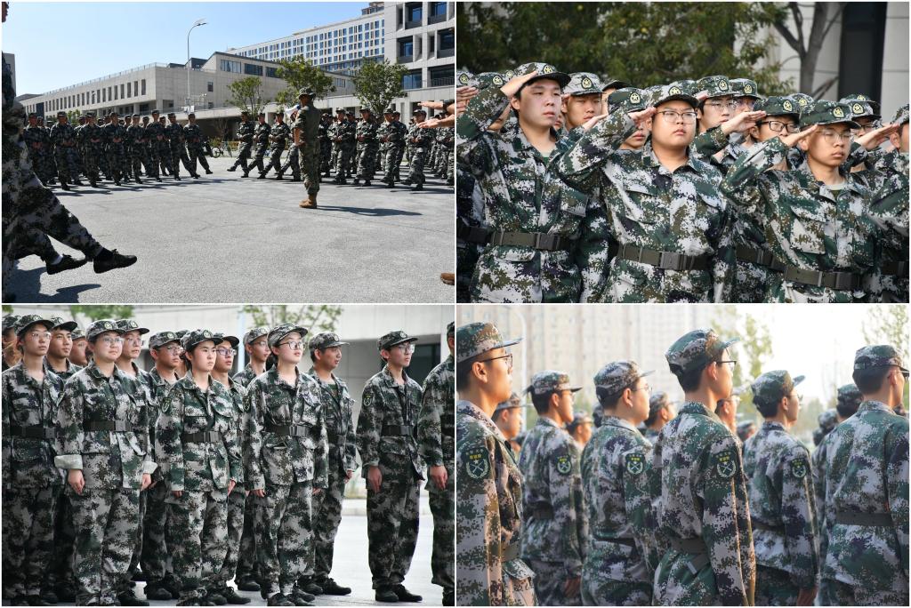 的新生们迎来了新一天的军训。训练场上,一片生气勃勃、斗志昂扬的景象。