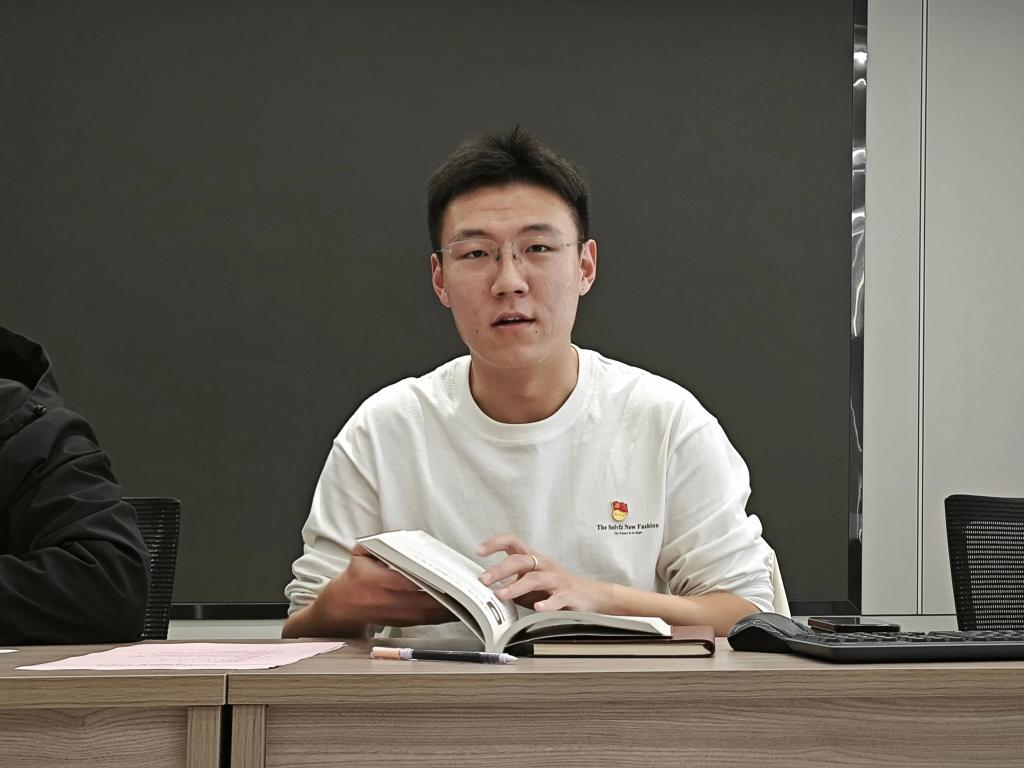 学生党员张子昊围绕《“刘老庄连”李云鹏烈士家书》进行分享交流。现场采用“原文共读+背景解读”的形式,与会党员逐句朗读家书原文后,张子昊结合李云鹏烈士投身抗日战场、带领战士坚守刘老庄的英雄事迹,逐句梳理字里行间的家国情怀,从“小家书信”讲到“家国大事”,让党员们在沉浸式朗读中感受革命先烈的初心使命,在烈士生平故事里领悟信仰的力量,进一步强化了作为青年党员传承红色基因、勇担时代责任的思想自觉。