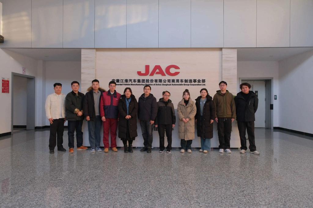 1月22日,田顺一行前往合肥市,参观走访江淮汽车集团新港基地。在参观江淮轻卡生产线过程中,田顺详细了解了企业生产流程与智能化建设情况。随后,田顺向企业人力资源部门负责人、校友代表了解招聘需求、流程等相关事项,重点介绍了学院近年来在人才培养机制方面的创新举措,并就毕业生核心能力需求进行了深入交流,希望为后续推动人才精准输送奠定基础。
