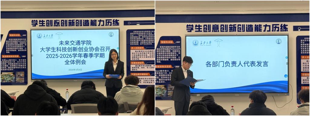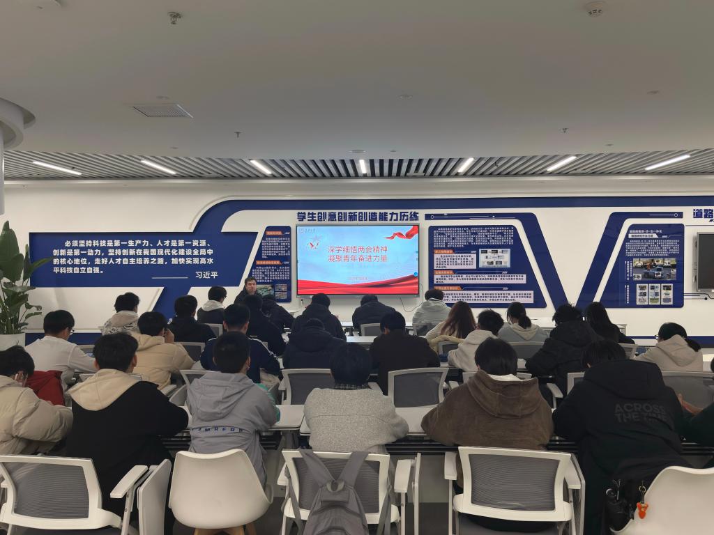 大学生科技创新创业协会于北校区弘毅大厦教学科研实验平台召开两会精神学习主题团日活动暨2025-2026学年春季学期第一次全体例会。院科协指导老师曾晓阳出席会议,院科协全体成员参会。