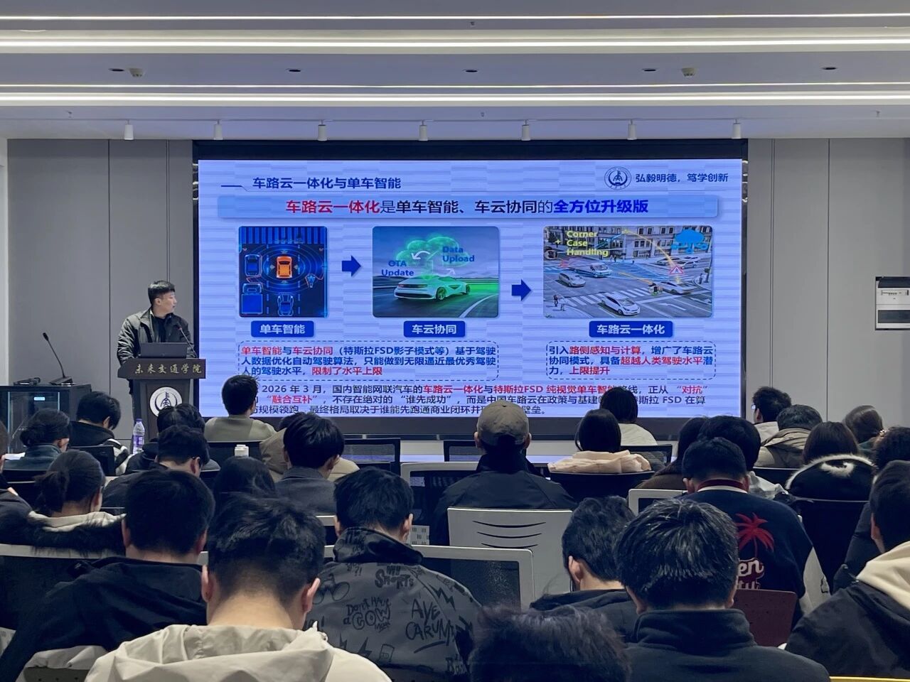 本次讲座聚焦智能网联汽车与智慧交通领域前沿热点,内容突出实践性与前瞻性,不仅拓宽了大家的学术视野,也加深了对车路云一体化发展现状与未来趋势的认识。学院将继续依托系列学术活动,持续营造崇尚学术、勇于创新的良好氛围,助力研究生成长成才。