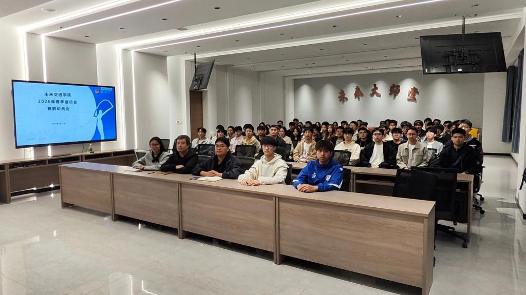 于弘毅大厦未来大师堂召开2026年春季运动会赛前动员会。院团委书记曾晓阳、院文体协会指导老师范荣欣出席会议,院团学组织和学生社团主席团成员、各训练项目负责人参会。会议由院文体协会主席路明柯主持。